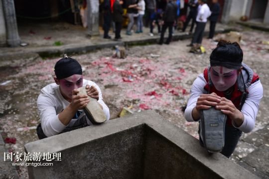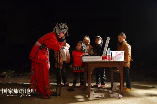 國家旅游地理 江西九江4月2日訊 在溪口鎮(zhèn)小溪村,三元班在演出寧河戲《三請(qǐng)樊梨花》(3月26日攝)。寧河戲是江西地方大型古老劇種之一,發(fā)源于江西修水縣,流行于贛北及湘、鄂、贛交界一帶。在寧河戲鼎盛的清乾隆年間,曾出現(xiàn)過“寧州十八班”,從業(yè)人員達(dá)到六七百人。然而隨著時(shí)代的變遷,寧河戲逐步?jīng)]落,最大的危機(jī)是逐漸空心化的村莊和村莊里越來越少的老戲迷。