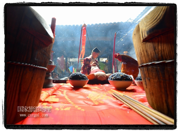 國家旅游地理 江西婺源(上饒)5月31日訊(特約記者王國紅 通訊員程新德攝影報道) “祭祀開始、鳴炮奏樂、祭拜、主持人講話、結(jié)束鳴炮”,5月25日,農(nóng)歷四月初八,石佛村烏飯節(jié),村民將自家精心制作的烏飯端進(jìn)祠堂祭祀。江西省婺源縣段莘鄉(xiāng)石佛村每年都要舉行烏飯祭祖活動,各家各戶將自家精心制作的烏飯端進(jìn)祠堂……